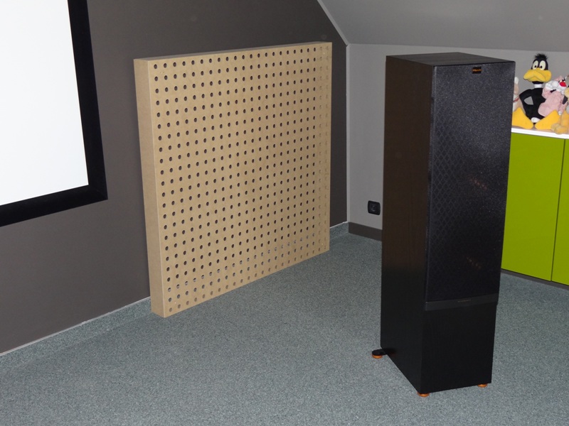 Voila, een allereerste sneak-preview...hier opgesteld tegen de voorste muur, doch de 1e 2 panels komen tegen de (rode) achtermuur op de 1e reflectiezone. Als ik dan geen verbetering hoor of meet  :threadclosed: